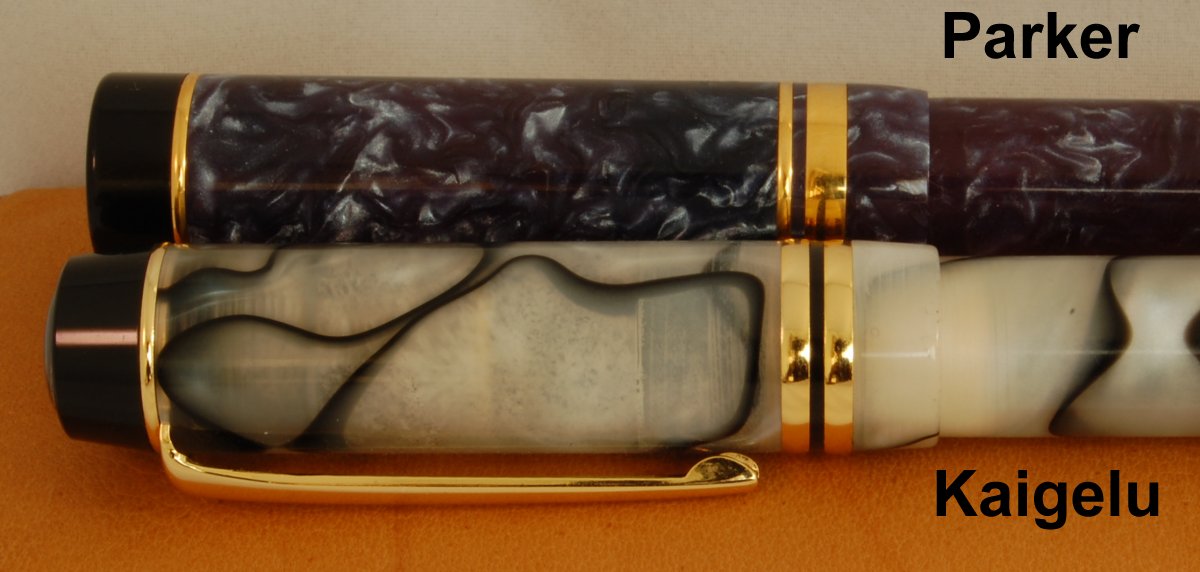 Recently I noticed ISellPens.com offering another Parker-wanna-be. Here we go again. The $32 Kaigelu 316 was shown side-by-side with a modern Parker Duofold (MSRP $400). The Kaigelu photos were promising. But hey, pictures can't convey true quality: touch, feel, weight, fit. At only $32, I had to try one just to satisfy my curiosity.